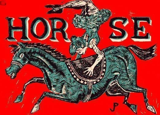Originally sold through Jim's website in 2000 for $50 plus shipping, these 3-color linoleum block prints from the Big Top Series were sometimes signed on the back.
