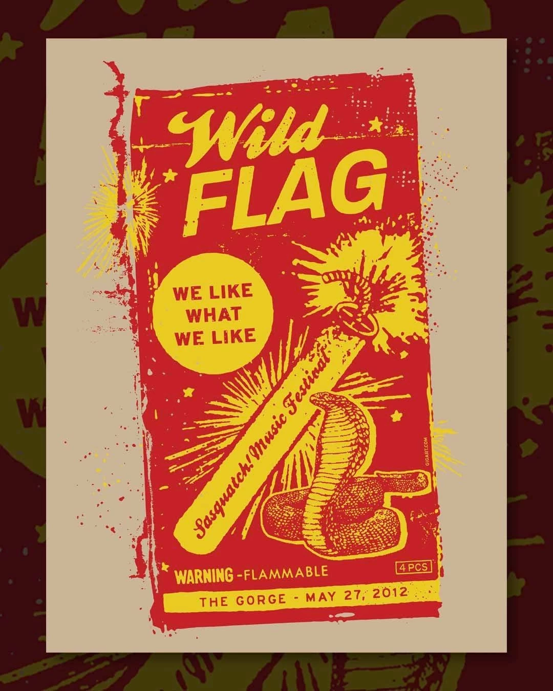 Home / Art Prints/ Gig Poster / Wild Flag SASQUATCH! Music Festival George 12 GIGART