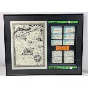 As for surviving copies, Sarah retains the original drawing of the map and a solitary colored print, while approximately 15 colored prints are accounted for elsewhere, along with only a handful of the black-and-white thick stock versions. A whimsical query arises regarding an inventory of extant copies, hinting at the poster's enduring allure.
