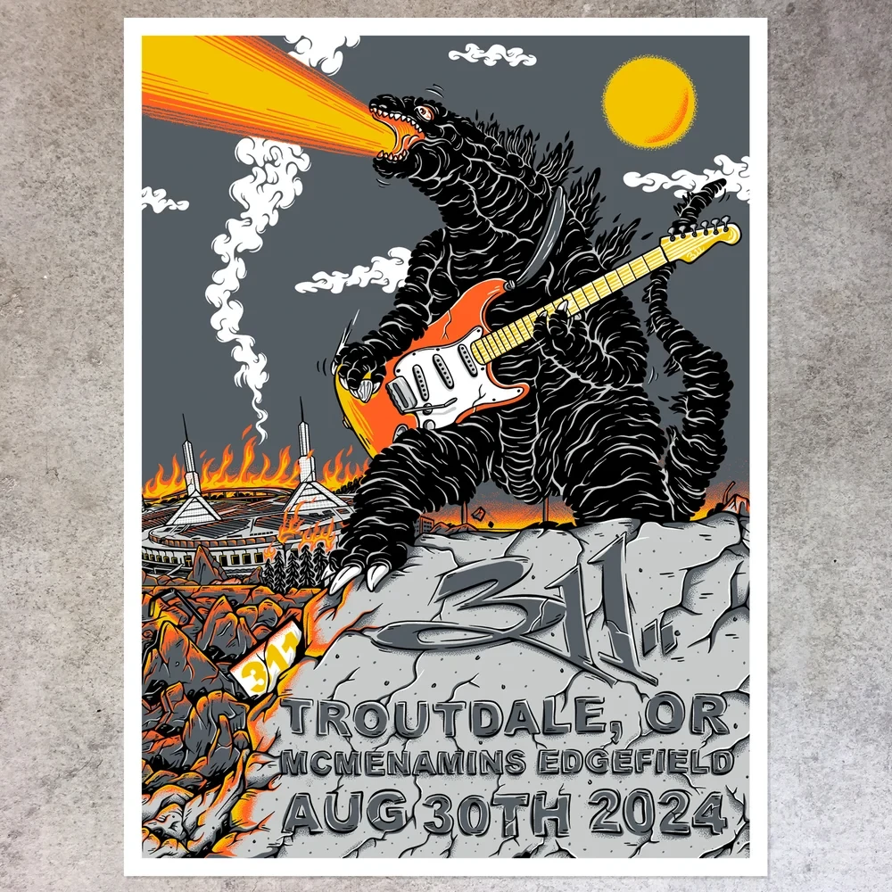 These Artist Edition posters feature dark grey inks in place of the light brown inks on the posters sold at the shows.