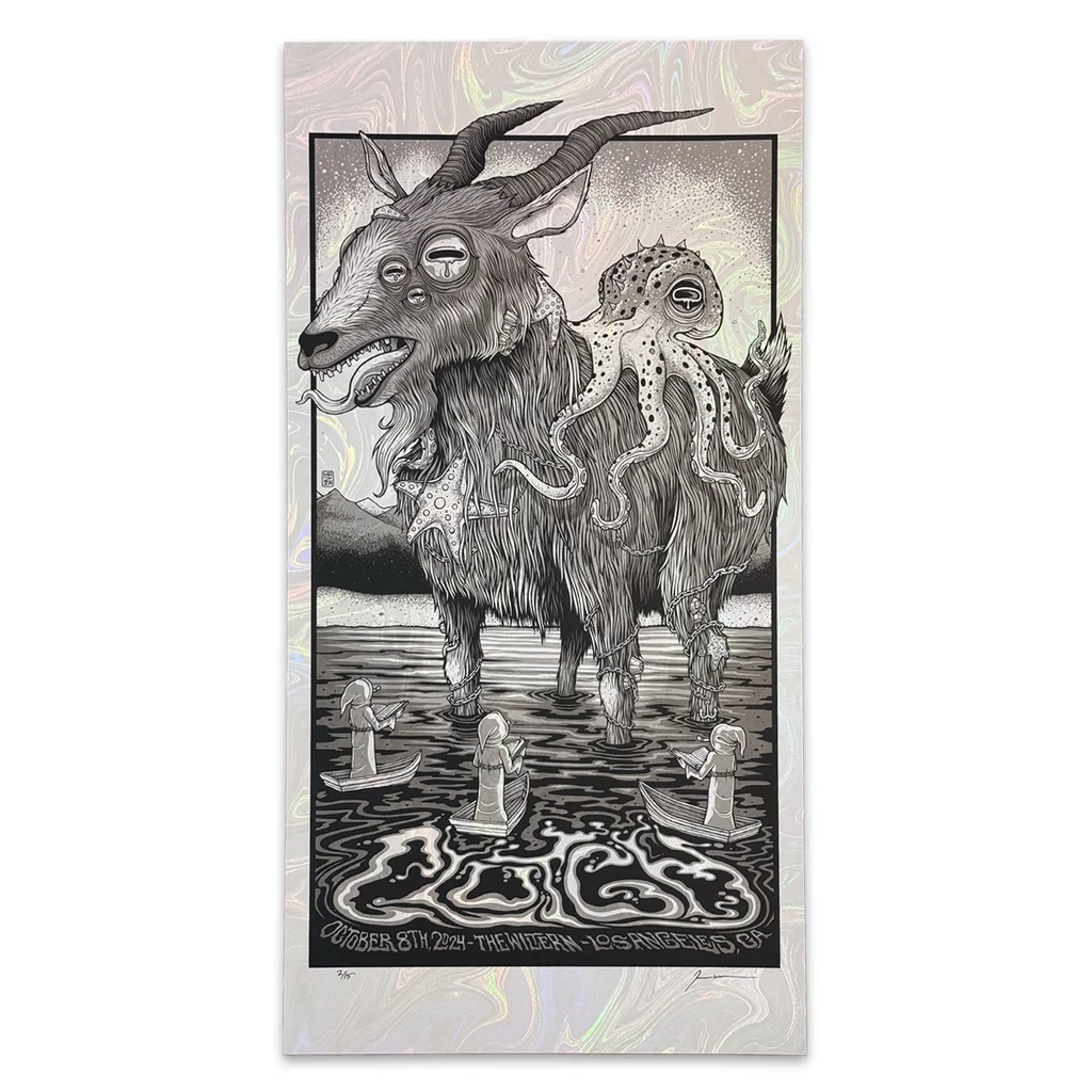 The poster includes metallic silver ink so the actual prints vary somewhat from the digital version. Beware of the Swollen Goat.