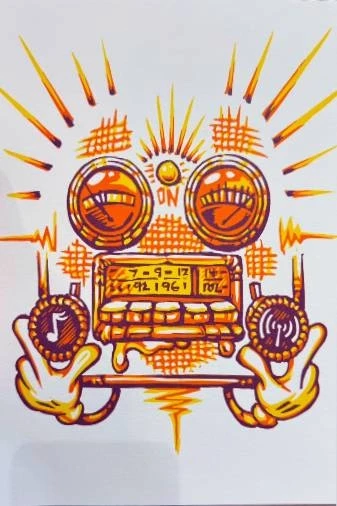 Honoring the tradition of giving away art at my Open Studio events, I humbly present this years freebie titled “Tune In”. Following last years “Turn On” it just seemed appropriate, we’ll see about a Drop Out next year… Free prints are available to all attendees, no purchase necessary, one per person, while supplies last. Can’t wait to see everyone tomorrow!