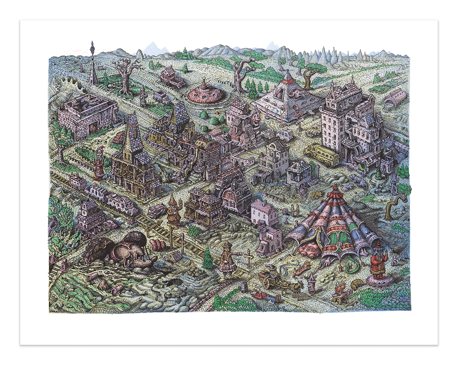 "Far Flung" is a 9 layer screen print crafted by DL screen printing in Seattle Washington. This piece offers my mind a place to escape and rest and wonder about possibilities. I hope it can do the same for you.