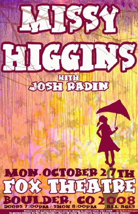 Home / Art Prints/ Gig Poster / Missy Higgins Boulder 08 DiChiappari