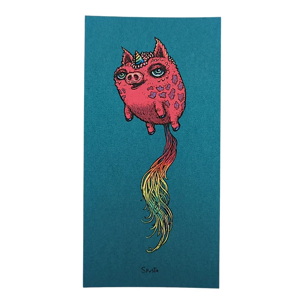 This micro appears in several variations, including alternate pig colors, versions with or without a soul patch, hand-embellished details, and UV-ink treatments.