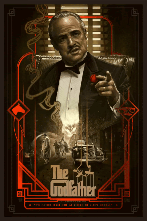 Ruiz Burgos invites us all to be a part of the Corelone family with his newest alternative movie poster for The Godfather.