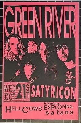 This is a reproduction of a vintage underground rock concert poster featuring the influential Seattle grunge band Green River, typical of Pacific Northwest music scene promotional materials from the late 1980s era.