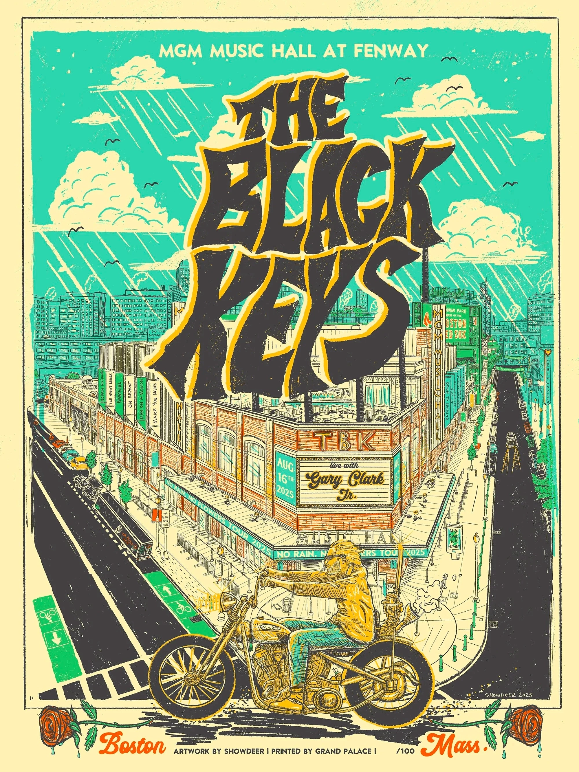 Credit to @showdeerart New poster for @theblackkeys tonight w/ @garyclarkjr @mgmmusichall at historic @fenwaypark in Boston! 😎⚾️🙌