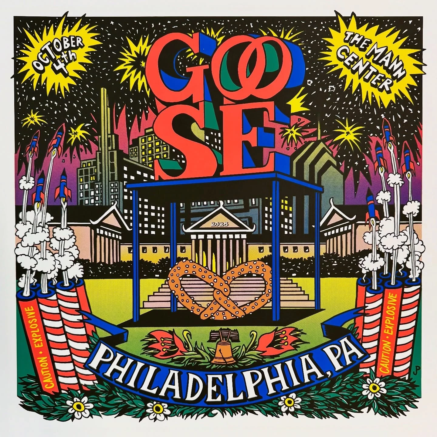 I’m thrilled to share my new poster for Goose @manncenter tonight! It’s always a pleasure working with this team, but even more so on a hometown print. Having grown up outside of Philly, I wanted to honor some of our favorite things including Robert Indiana’s Love ❤️ and @philamuseum. 🎇🧨