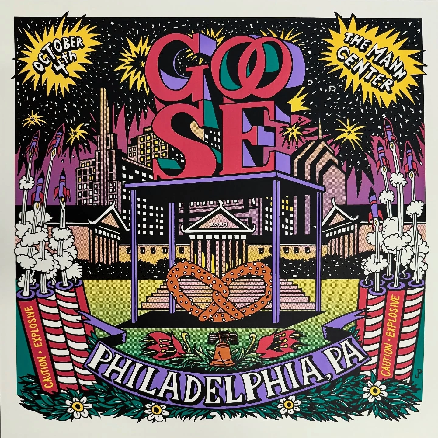 I’m thrilled to share my new poster for Goose @manncenter tonight! It’s always a pleasure working with this team, but even more so on a hometown print. Having grown up outside of Philly, I wanted to honor some of our favorite things including Robert Indiana’s Love ❤️ and @philamuseum. 🎇🧨