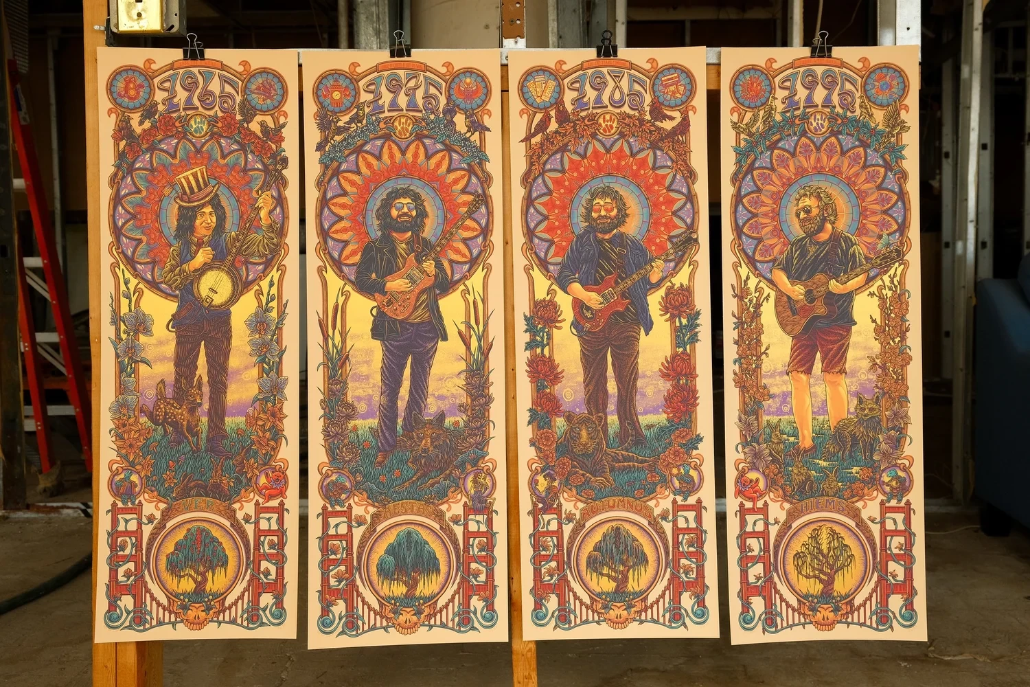 Four prints, 12x36 each, seven colors, a rainbow full of sound straight to your noggin. It has been a long and testing six months working on this quartet, and I could not be more grateful to finally have this out in the world. Group reserve is on sale now at the link below, password is "GD". Public onsale will be tomorrow at noon. Please do not share this outside of the group until it is publicly shared tomorrow.
