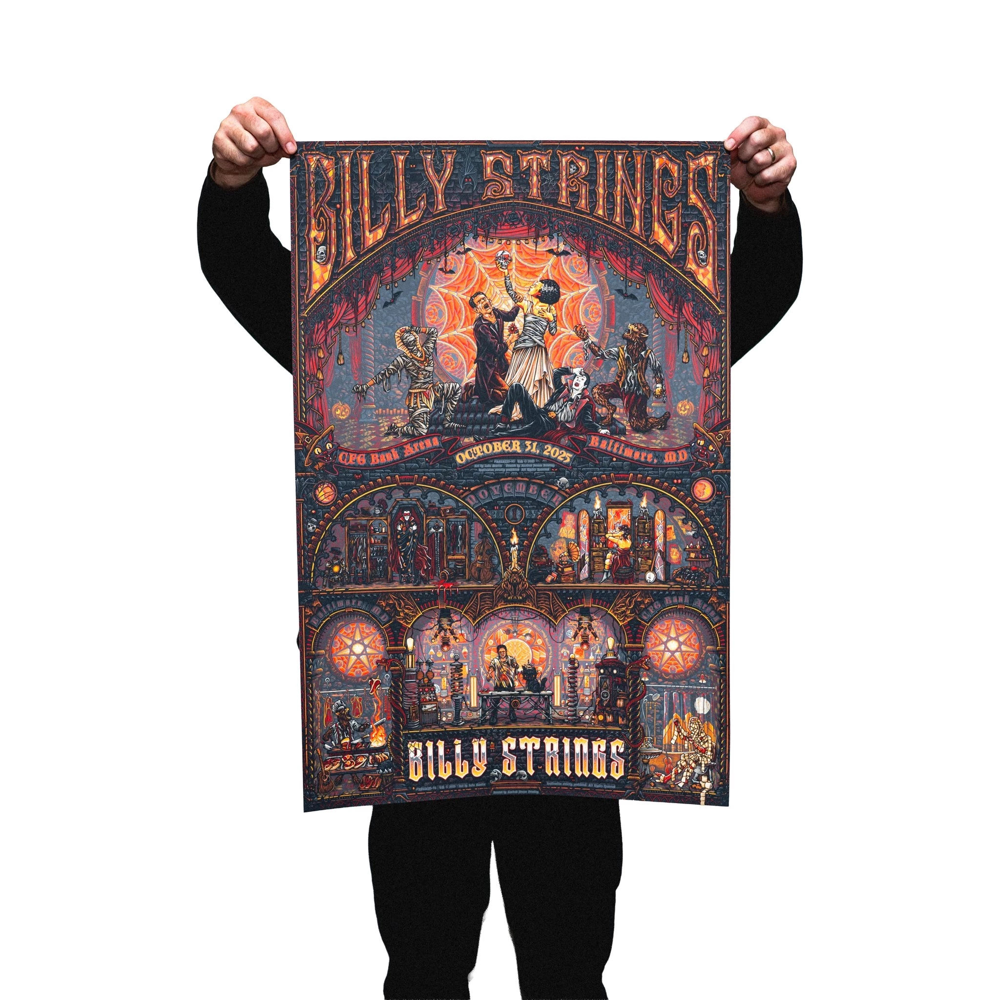 Hello all you ghosts, goblins, gremlins, and ghouls of unimaginable fright… It’s been four years coming, and I could not be happier to share some new work for the unstoppable Billy Strings. The band is bringing a macabre masquerade like no other to my hometown of Baltimore this weekend; it’s gonna be a freakin’ hoot and a half. I am so stoked that I got to do this poster! Hell yeah!!!!