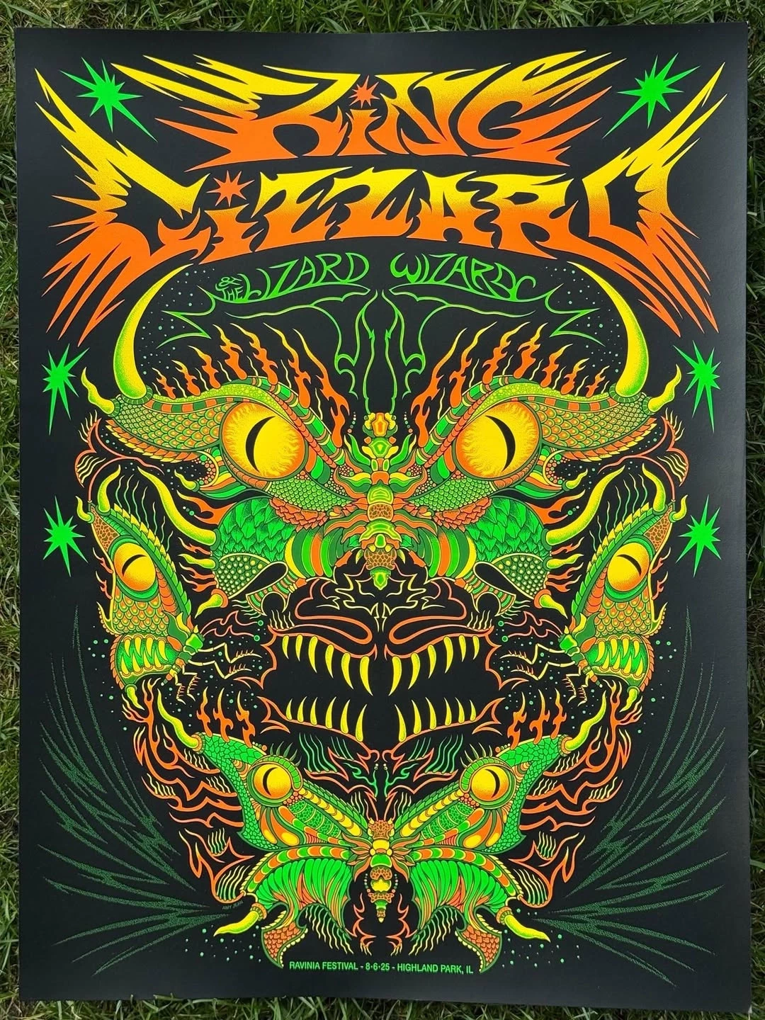 Home / Art Prints/ Gig Poster / King Gizzard & The Lizard Wizard Ravinia Festival Highland Park 25 Jean