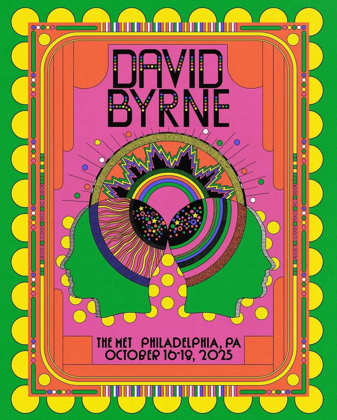 Poster for the one & only @davidbyrneofficial at @themetphilly in Philadelphia, Oct 16-18, 2025 ❤️ 🗣️ Endless thanks to @carneymichael & @redstarmerch for giving me this opportunity. These will be available at the merch table & I’ll have APs in my online store soon!