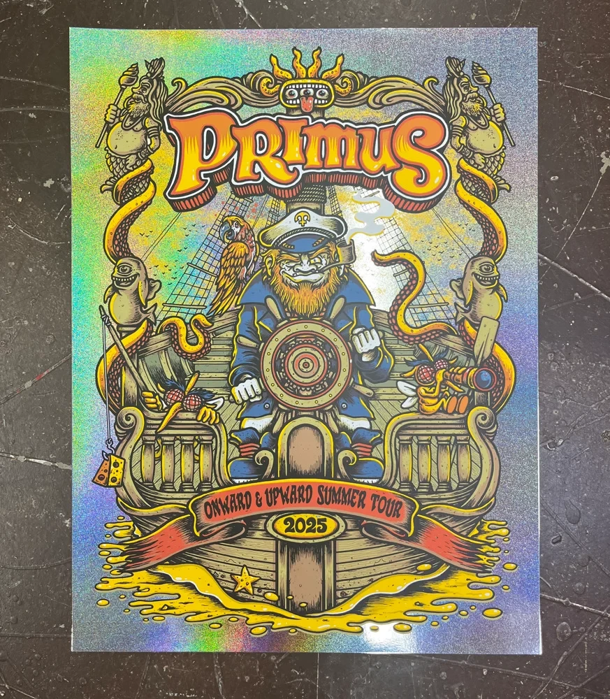 Ahoy landlubbers… Ease the Helm & bring er’ half speed!!! (I have no idea what I am talking about). Those manical musical mariners, Primus are back on Tour and I was honored to be given the task to create the VIP poster for the “Onward & Upward” run.