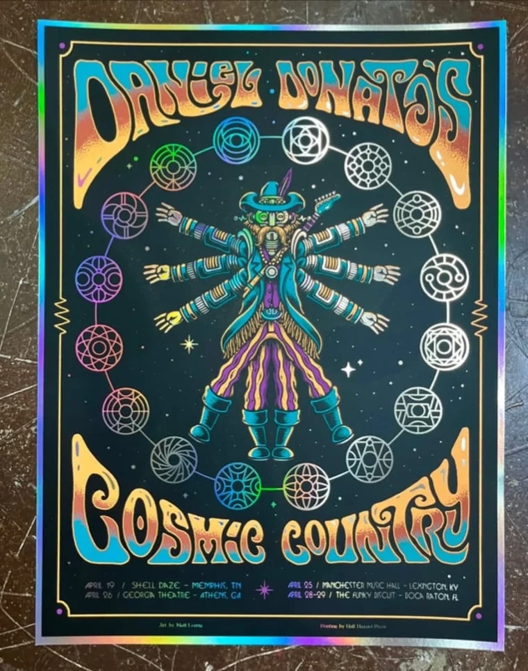 Here is my latest poster for Daniel Donato’s Cosmic Country, (Daniel Donato) current run of shows, which also marks my first time working with these cosmic cowpokes.
