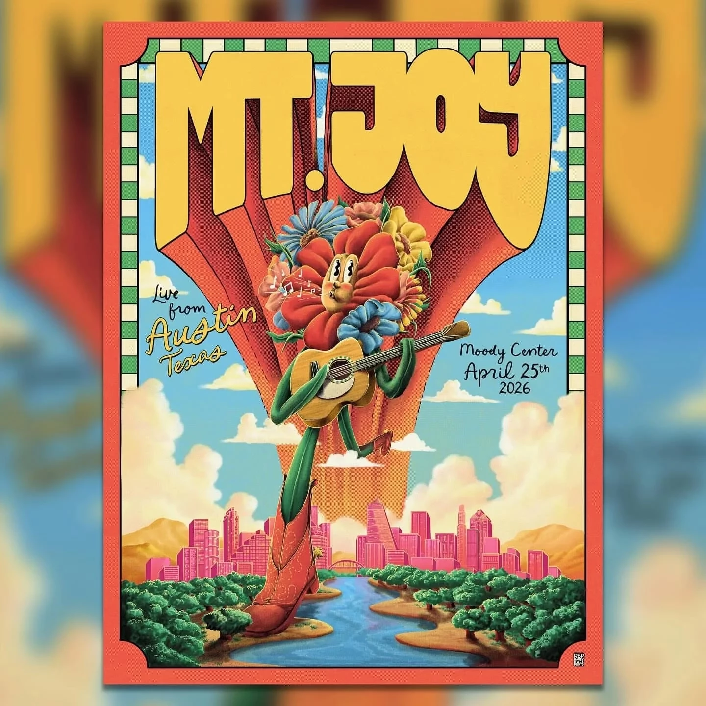 This was one of those “just have fun” posters, and the band wanted me to try to encapsulate the vibe of being on your way to a Mt. Joy show, passing thru Texas and into Austin, so that’s what I tried to nail. We’ve had this flower guy pop up over the last several years of posters, so I figured it was time to give them front and center in a poster - plus it gave me an opportunity to really expand what I did for my yearly SXSW poster a few years ago, so it was a win win!!