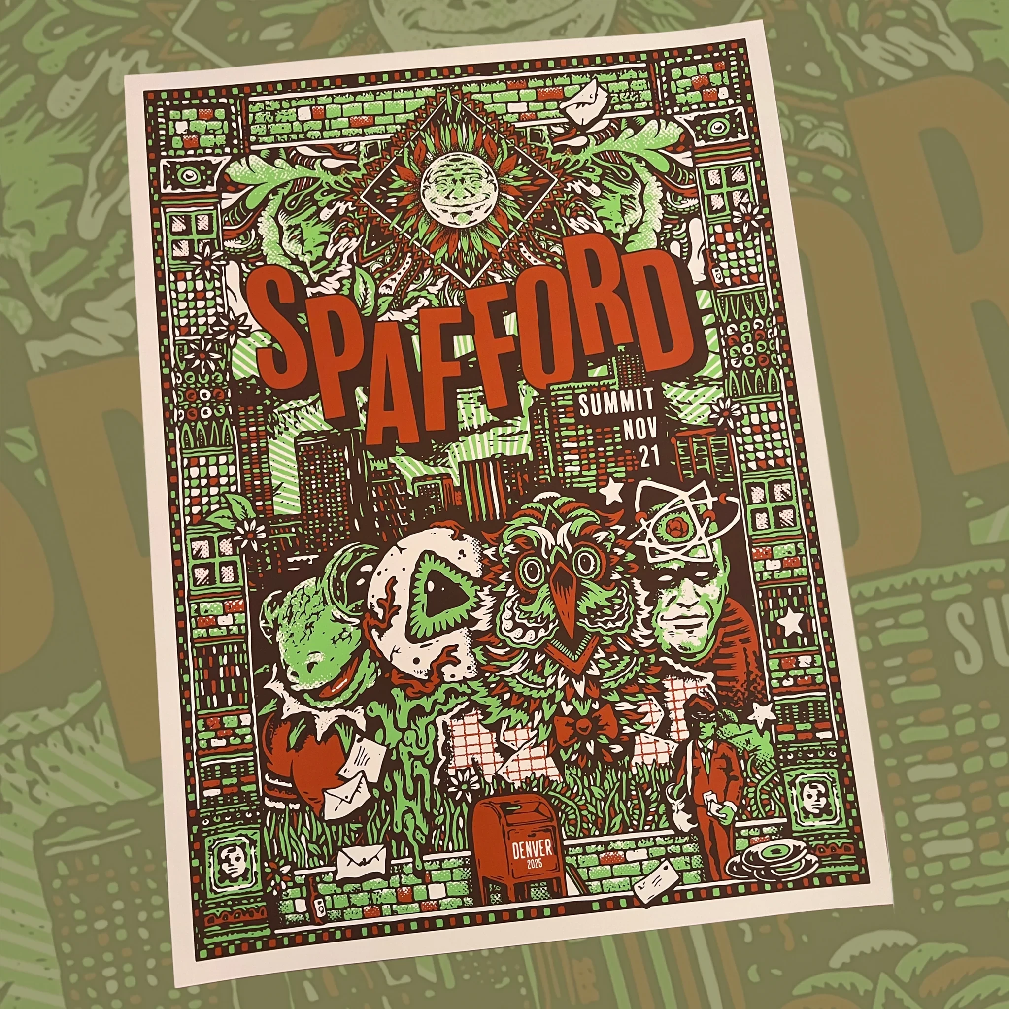 The Quartet was first designed for Spafford as an enamel pin. These four have now made the jump into a gig print giving collectors a chance to synch up their collections. Pretty rad!