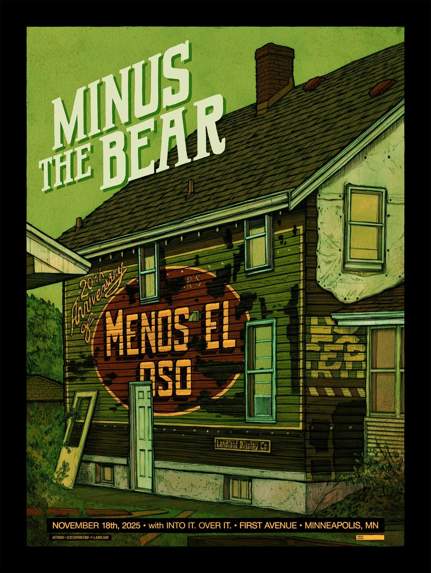 Maybe two weeks later, I got the call from the homie @brokenpressdesign asking if I’d make the posters for this show, wherein @minusthebear would be unearthing their excellent MENOS EL OSO album for a 20th Anniversary tour…obviously I wanted to, obviously I instantly knew what the poster would be like, and obviously that’s exactly what happened.