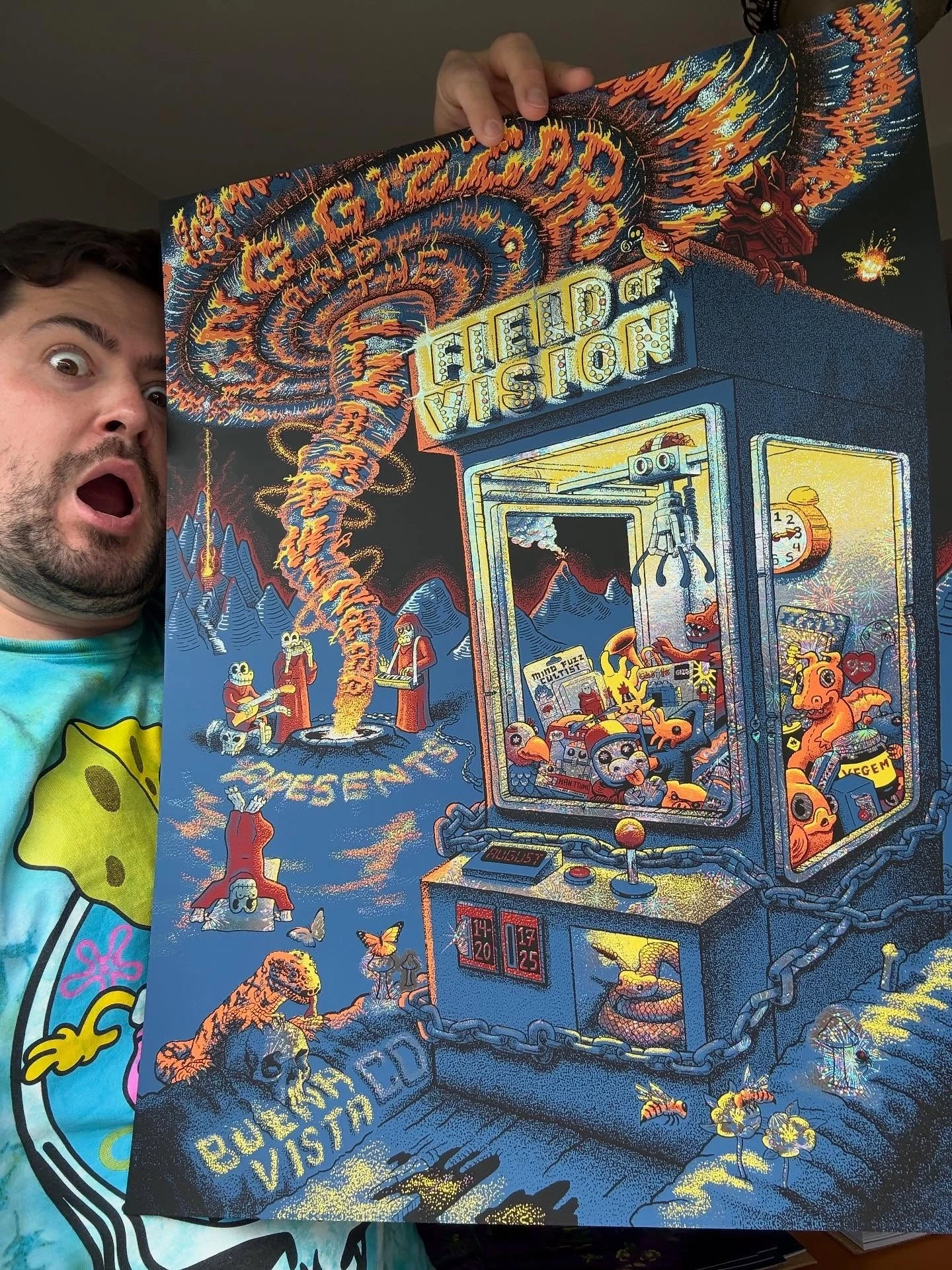 Psyched to share my bootleg poster for @kinggizzard inaugural FIELD OF VISION festival at @meadowcreekcolorado Inspired by the chase for that favorite tune, elusive debut, or heady jam. Fueled by a blistering couch tour across the EU and the bounty of madcap creativity oozing from the Swarm this year. Printed by @seizurepalace