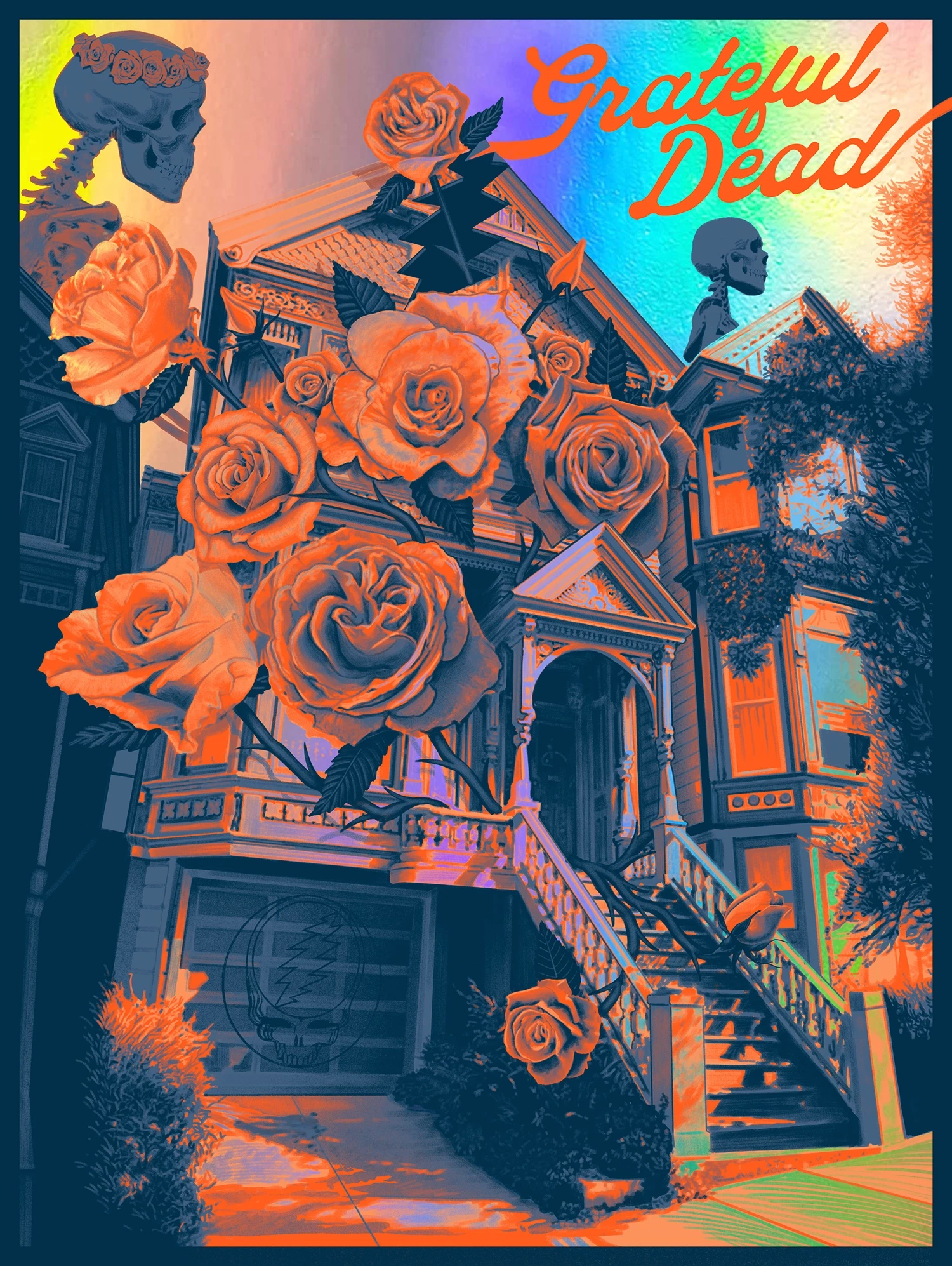 710 Ashbury St. is an iconic location that features a wealth of Grateful Dead lore, despite the band’s relatively short stay at the location. Paul’s print is centered around the legendary house, featuring a detailed and lovingly drawn interpretation of the property all wrapped up in Grateful Dead iconography.