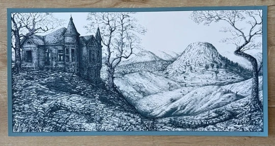 The commission was to revisit the story of Rift from a new perspective. I chose to imagine the house from the original piece decades later. I see it as a sort of "one possible future" in the story where the main character chose to bury all his troubles and memories and turn away from love. The consequence is his shell of a home years later in ruins as a symbol of his bitter empty heart had he not chosen love. And the Mound looms in the distance as a testament to his troubles all buried but impossible to hide. So now we have the dawn rising on the tormented dream sequence from the original piece and early Spring offering some sense of renewal regardless of the choices the protagonist has made or not made.