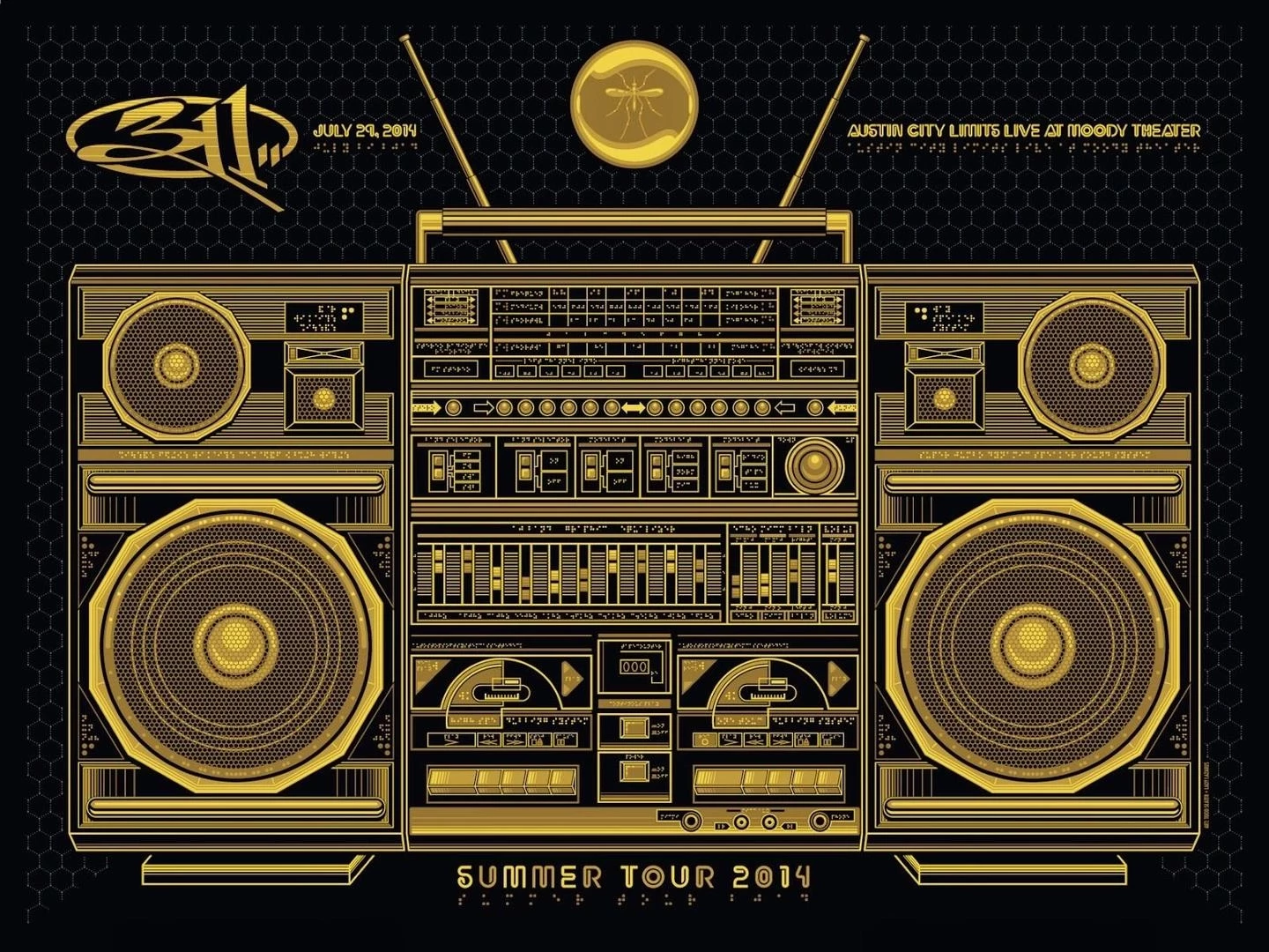 Initially, I wanted to make a boombox encased in amber as reference to 80s/90s music devices and their relative extinction. When I started piecing the image together I felt I wasn't getting enough contrast and abandoned the idea in favor of a more graphic solution. I struggled with how to handle areas where text was written on the boombox and ultimately decided to put all of it in braille. Clearly, this was the same person who made the Close Encounters print and I could now envision the finished piece. I also liked the idea that any instructions on how to use this relic would be cryptic. The mosquito in amber was a tie in to my first thought and a way to punctuate the image.