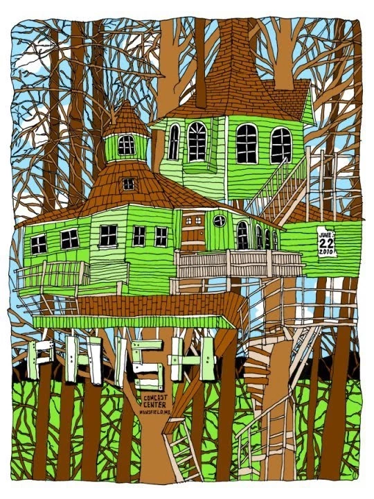 From the list of concepts I submitted , the "impossible treehouse in the woods in the vain of my portland poster" was the one they liked best, as it related to the venue and was a homage to "great woods" before the comcast takeover.