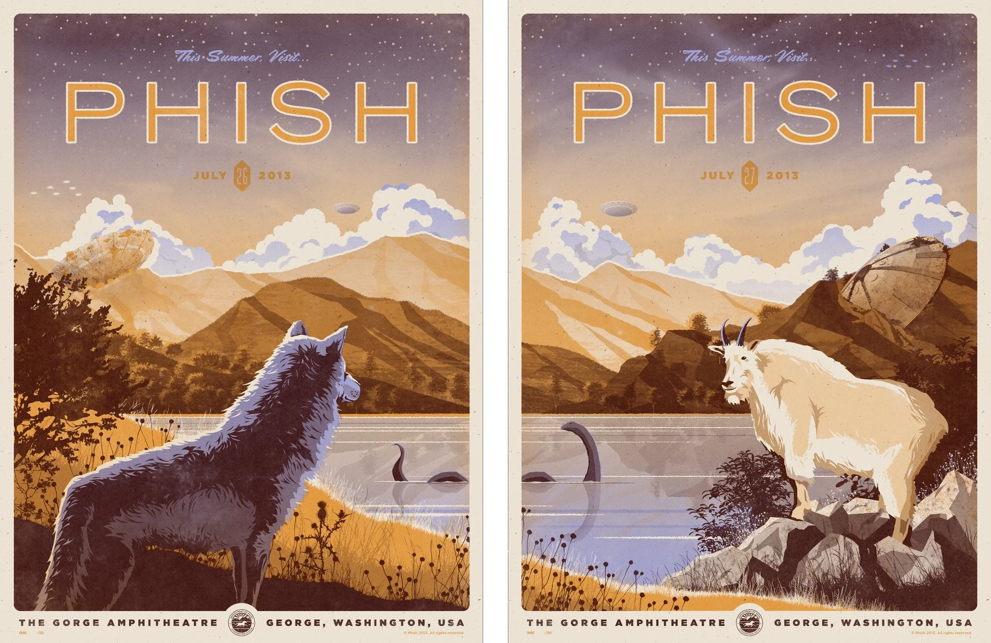 As part of their summer tour, Phish is playing back to back nights at the historic Gorge Amphitheatre in George, Washington. To commemorate the two-night visit, we created a diptych showcasing the beauty of the Gorge with a few unexpected supernatural visitors coming along for the ride.