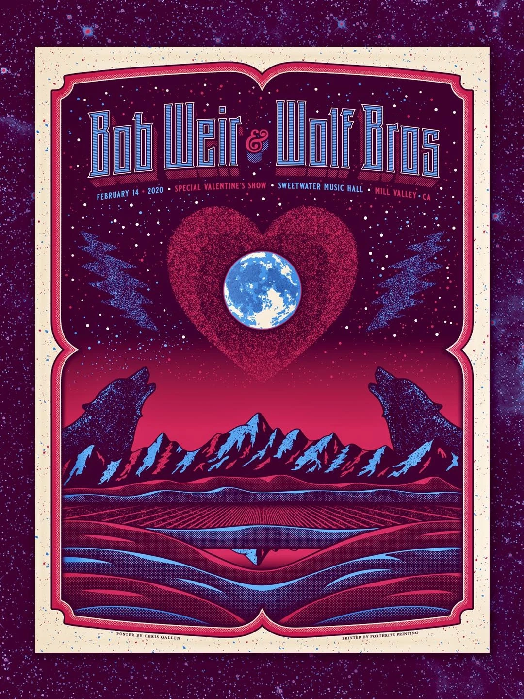 Home / Art Prints/ Gig Poster/ Bobby Weir & Wolf Bros N4 Mill Valley 20 Gallen